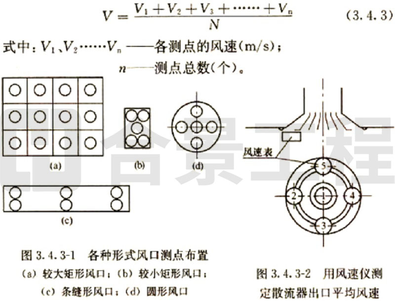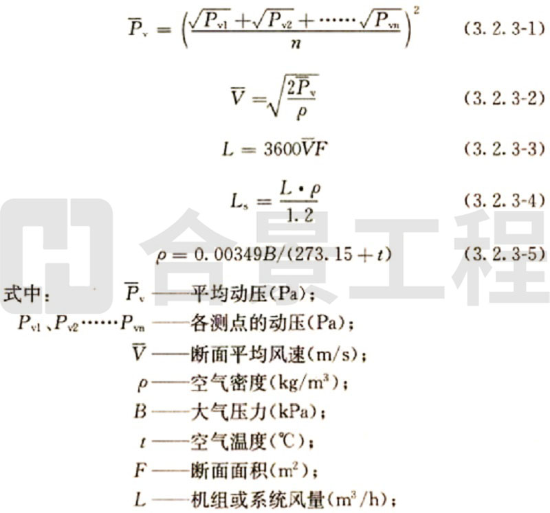 (2)當(dāng)采用熱電風(fēng)速計(jì)或數(shù)字式風(fēng)遺計(jì)測量風(fēng)量時(shí),斷面平均風(fēng)速為各測點(diǎn)風(fēng)速測量值的平均值,實(shí)測風(fēng)量和標(biāo)準(zhǔn)風(fēng)量的計(jì)算方法與畢托管和微壓計(jì)測量計(jì)算方法相同。