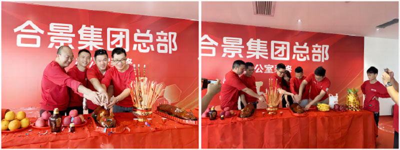 8時8分合景集團朱總帶領公司管理層及部分同事齊聚一堂,共啟裝修開工儀式,見證合景集團發展的重要時刻